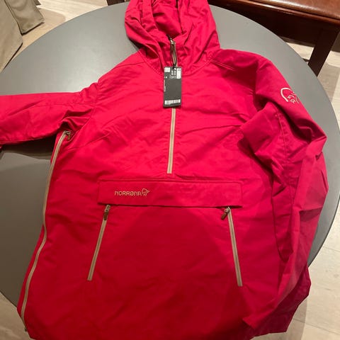 Norrøna Svalbard anorak dame i størrelse M, blå farge og laget av bomull. Jakken har hette og flere lommer med glidelås, egnet for utendørs bruk.