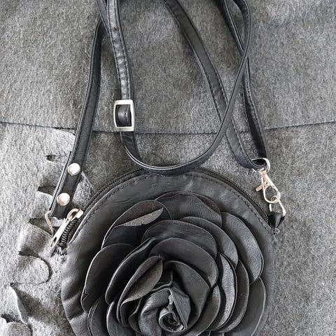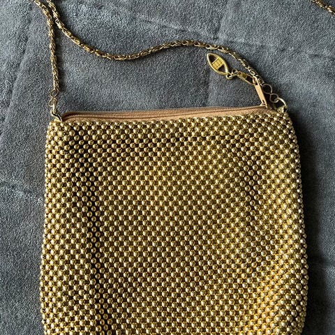 Veske med gulldetaljer. 20x14 cm og 6cm dyp. Bærer preg av bruk, men ingen skader på den og har mye bruk igjen :)