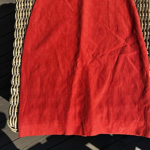 Flott rødfarge med pent bølgemønster i stoffet - se bilder