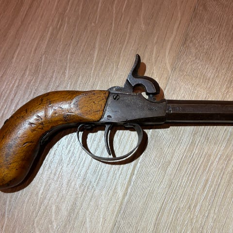 Flott perkusjon med design detaljer i tre og metall.Flott gravert med nettskjæring.Egnet for samlere eller bruk i svartkrutt klubb.