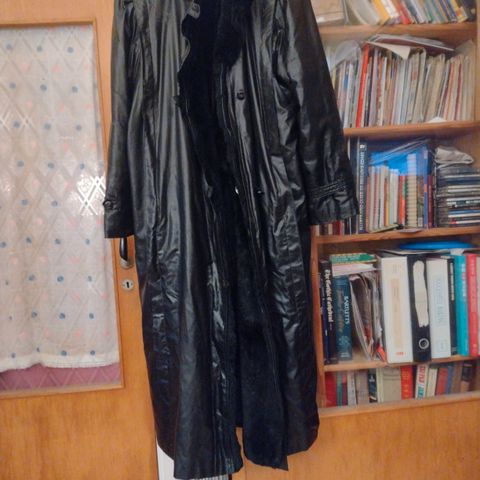 Beskrivelse: Skinnfrakk med pelskrave
