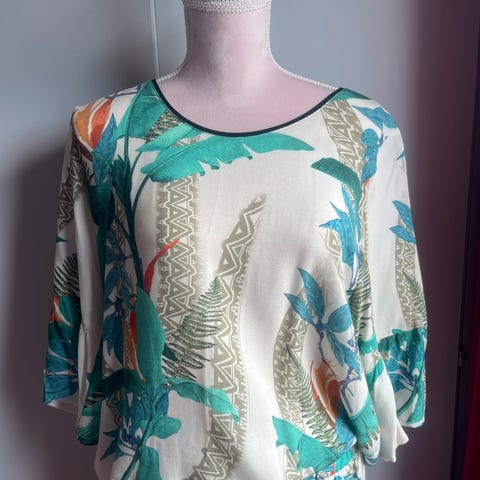 Topp og bluse str 42-44, skjørt i str 46-48, alle i viskose.