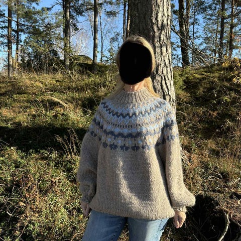 Nydelig hjemmestrikket Kamille genser AlpacaBris- Viking garn