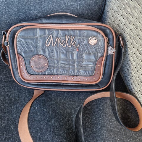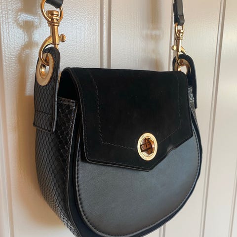 Pent brukt veske med gulldetaljer. To gode lommer inni. Den måler 20x15x5cm.