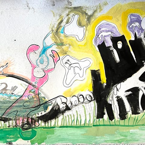Blandingsteknikk på papir.