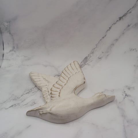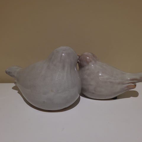 Keramisk fugl dekorasjon med brun, svart og hvit farge. Laget av keramisk materiale, designet som en liten fugl med detaljerte mønstre. Passer som dekorasjon i hjemmet.