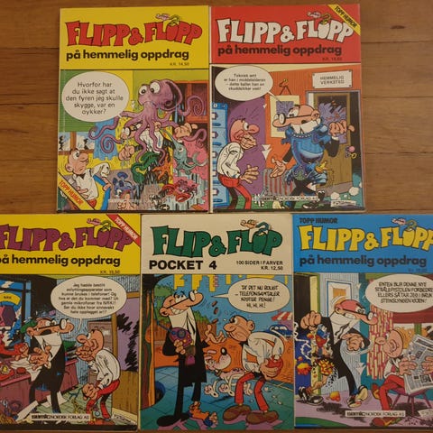 Flipp & Flopp På Hemmelig Oppdrag er en tegneserie med fargerikt omslag. Den inneholder humoristiske og spennende historier, illustrert med klassisk tegneseriestil.