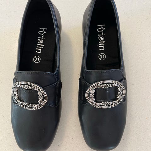 Selger et par Kristin bunadsko i str 29. Skoene har noen merker ved tærne på utsiden av skoene, hae brukt sort skokrem, noe som gjør skoene så gode som bye, uten synlige merker.
