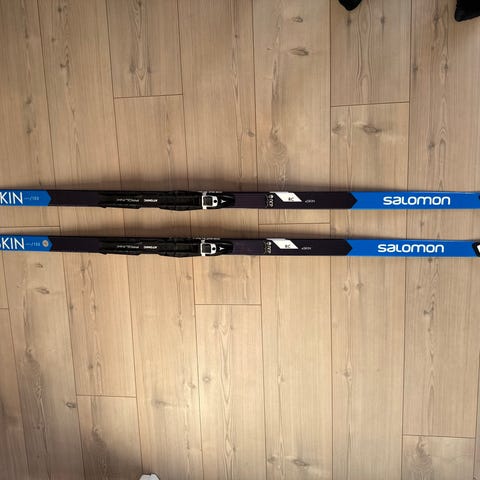 Pent og lite brukte klassiske felleski med bindinger fra Salomon. Selges fordi de ikke blir brukt, kjøpt på Sport1 i 2023.