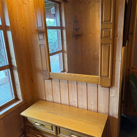 Fin liten sjenk som passer fint til garderoben og til små ting. Eller til et annet fint krok. Passende speil er i en annen annonse og kan selges samlet.