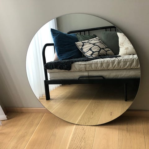 Fin rundt speil 63 cm I diameter. Passende sjenk ligger i en annen annonse og kan selges samlet.