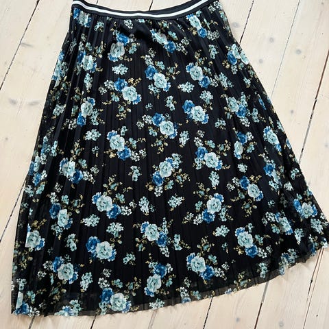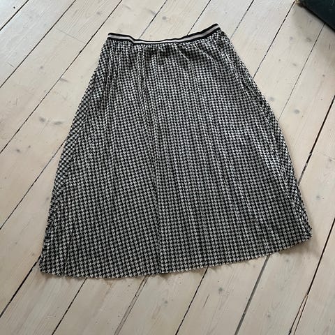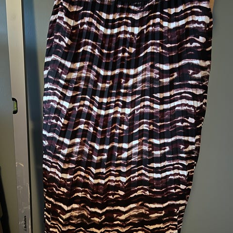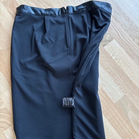 Selger et elegant og stilfullt skjørt fra OUI i svart/sølv glitrende stoff. Skjørtet har en flott fall og gir et eksklusivt uttrykk – perfekt til fest, middag, selskap eller andre anledninger hvor du vil pynte deg litt ekstra.