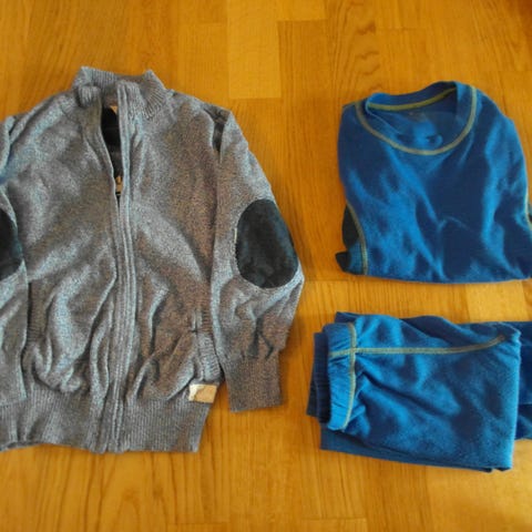 To barn gensere, blå og svart.