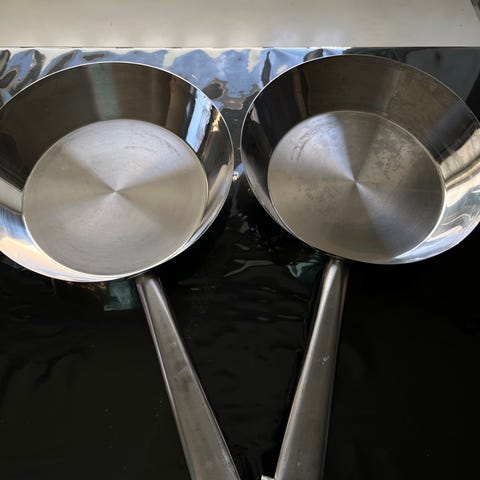 4 stekepanner og plastboller/dørslag selges rimelig. Noen bruksmerker på alt. Selges kun samlet. Må hentes.