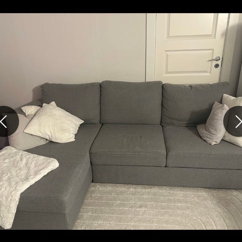 Sofaen er pent brukt, med normale bruksspor. Putene er myke og behagelige, og sofaen har et tidløst design som passer de fleste hjem.
