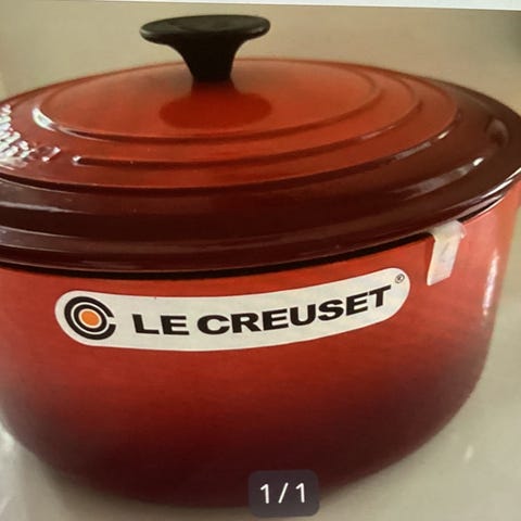 Le Creuset emaljerte lokk i stål, med diameter 30cm, er fremstilt i kraftig rustfritt stål og er emaljert både innvendig og utvendig. Meget pent. Passer perfekt sammen med f.eks. Le Creuset suppegryte - se illustrasjonsbilde (bilde nr. 5) - gryten følger ikke med.