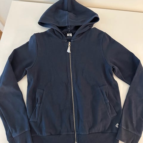 GANT langermet genser med blå og rød striper i størrelse 146-152, 11-12 år. Genseren er laget av bomull. Den har krage og knappelukking. Passer til både gutter og jenter. Lite og pent brukt.