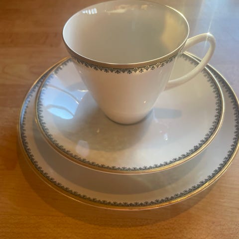Består av : 12 stk dype tallrerkner, 11 stk asjetter, 5 stk middagstallerkner, 3 stk boller h=90 b=190, 1 fat lengde = 320 b=220