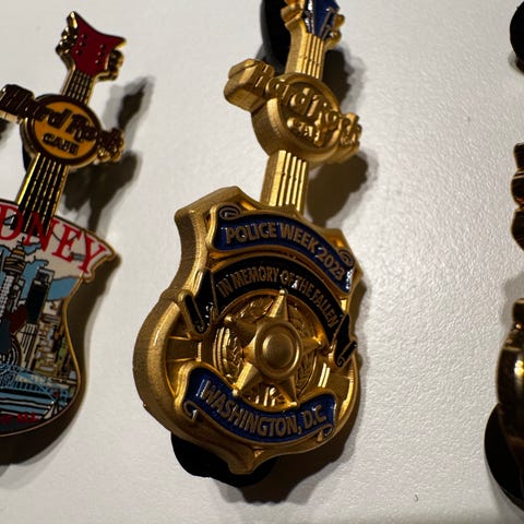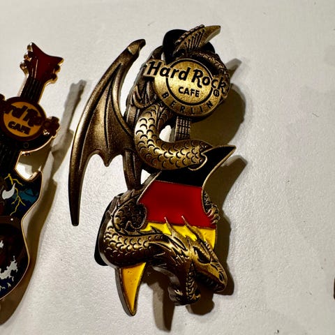 Hard Rock Cafe Eiffeltårnet magnet med design inspirert av Eiffeltårnet i Paris. Magneten har detaljer i rødt, hvitt og blått.