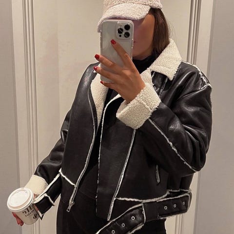 Str 40, men den er oversized og passer flere str avhengig av passform.