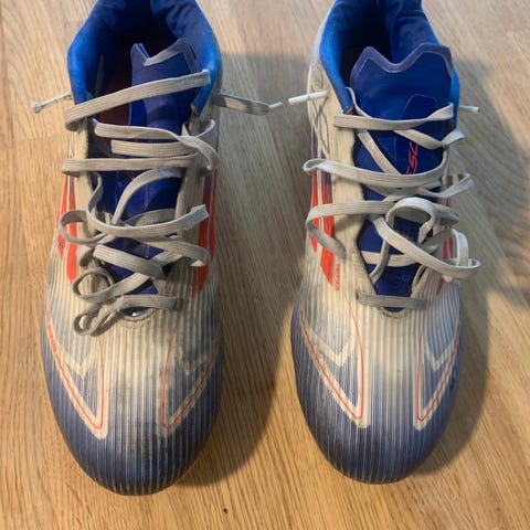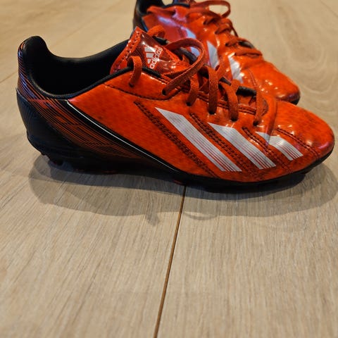Er noe skitten, men blir nog litt mer rein etter en runde i vaskemaskinen. Har autograf fra en kjent fotballtrikser på siden av den ene skoen. Massa bruk igjen!