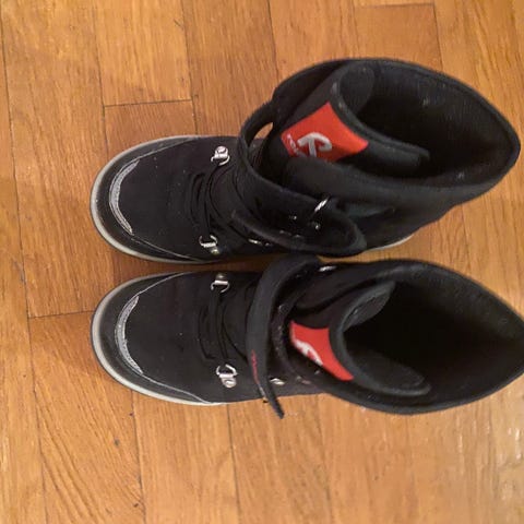 Reima vinterstøvler for barn, unisex, størrelse 35. Støvlene er svarte med gummisåle og har snøring foran for justering. Designet for å gi varme og beskyttelse i kalde værforhold.