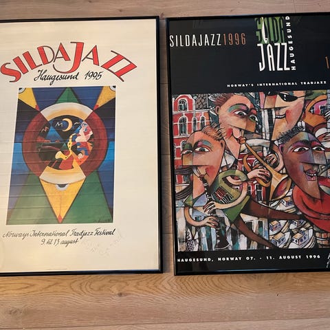 2 sildajazz plakater selges 200,- pr stk eller 300 samlet pluss frakt . Liten skade på hjørnet på den ene (se bilde) men blir skjult av eventuelt innramming.