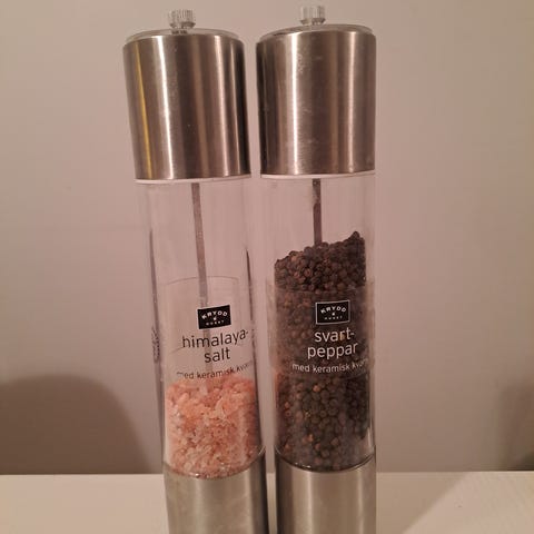 Ved å teste den andre ser jeg at den kverner salt utmerket.