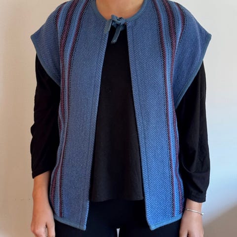 Liten i størrelsen dersom man trekker i overvidden. Gå gjerne opp en størrelse, kjolen reguleres med knyting i livet»