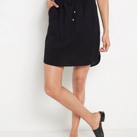 Lindex svart skjørt i størrelse 38 laget av polyester. Skjørtet har dekorative detaljer på sidene og glidelås bak. Egnet for kvinner.