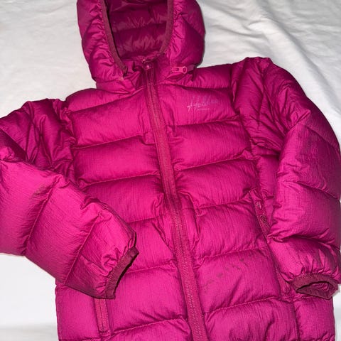 Selger ei varm dunjakke fra Heldre i str 104. God på størrelsen og har en nydelig rosa/lilla farge. Justeringsmuligheter på ermer, nederst på jakka og hetta. Fire lommer på framsiden av jakka.