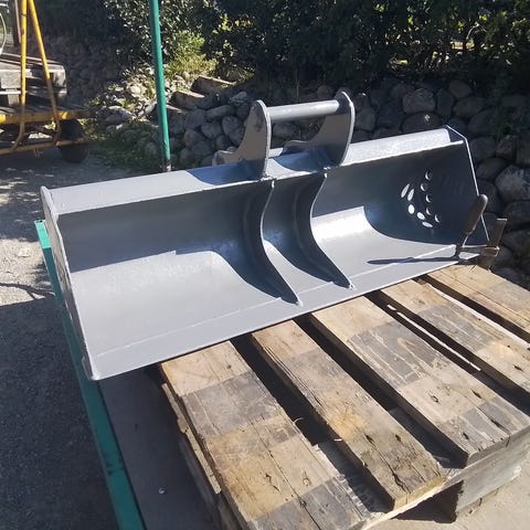 Pusskuffe, brukbar stand. Har tidligare vore smp-2 hurtig-kobling. Originalt med tilt-sylindarer. Desse er havarart. Selger skuffe uten smp-2 kobling og tilt. Skuffe størrelse passer sannsynlig med s-60 feste. Skuffa er brukt på ei 13t maskine. Vurderes selt kr 4000,- + mva.