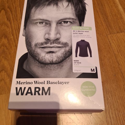 Devold Duo Active 205 Merinoull genser i størrelse M for herre. Genseren er svart med hvite prikker, og laget av 100 % organisk merinoull, som gir god isolasjon og fukttransport. Passer til bruk som undertøy eller mellomlag ved ulike aktivitetsnivåer. Nypris 799, min pris 680.