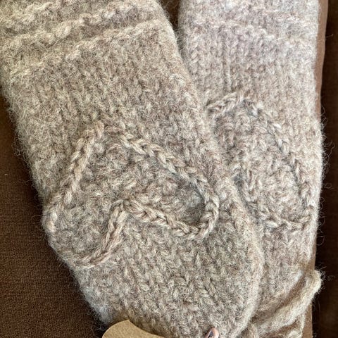 Tova votter til barn. Ca str 1-3 år . Hjertevotten ♥️og Brettevotten. Fargene er ; lys beige melert og Beige melert.
