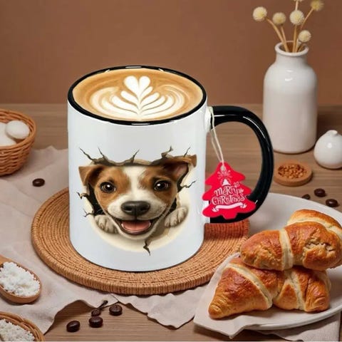 330ml Kopp Gave for Cappuccino Latte Frokost Yogurt Melk Mikrobølgeovn Perfekt for Jobb Skole Utendørsaktiviteter 3D Jack Russell Terrier, Morsomme Kaffekopper, Kaffekopper Med Morsomme Sitater.