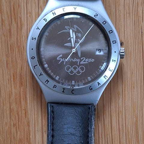 Sjelden automatisk mekanisk SWATCH klokke, 1994, ETA 2842 kaliber med metallhendel. Utgitt for de olympiske leker i Atlanta i 1996.