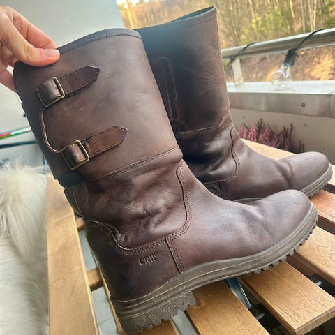 CRW Chelsea boots i brun skinn for herre, størrelse 42. Bootsene har elastiske sidepaneler og gummisåle.