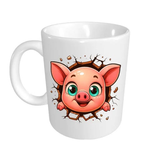 Morsom kaffekopp i keramikk med tegneseriegris – Holder drikker varme eller kalde, søtt smilende grisdesign med et sprukket veggutseende, perfekt gjenbrukbar gave til bursdager, høytider, jul, nyttår og Valentinsdag.