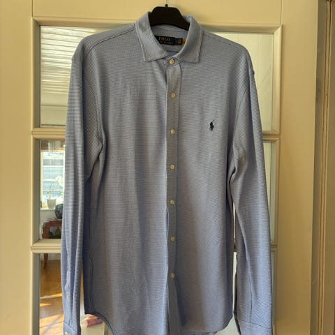 Ralph Lauren Polo skjorte i blå farge. Skjorten er i herrestørrelse M og har klassisk design med knappestolpe og krage.