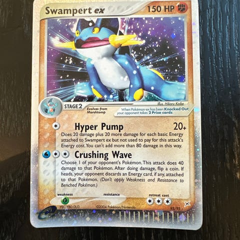 Pokémon Swampert EX samlekort med holografisk design. Passer for samlere og spillere av Pokémon-kortspill.