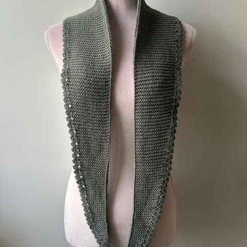 Nydelig mykt strikket skjerf i 65% ull og 35% alpakka.