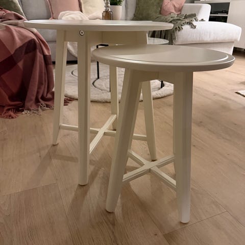 Jag säljer mina sofabord pga flytt! Två vita kragasta sofa bord från Ikea!😊