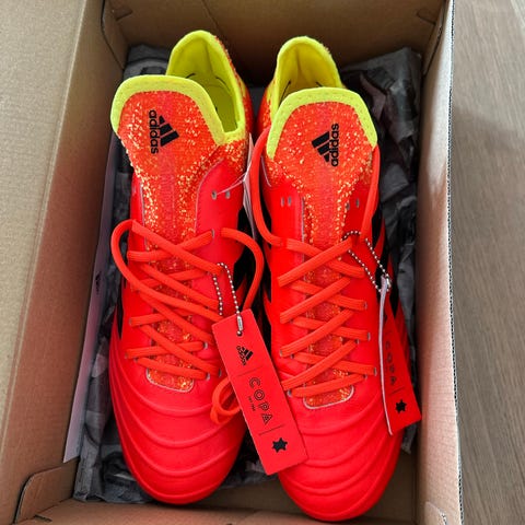 Nike fotballsko i blått, størrelse 41 Skoene har knotter på gummisåle egnet for kunstgress eller grus. Materialet er syntetisk, og skoene er designet for bruk ved fotballspill.