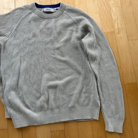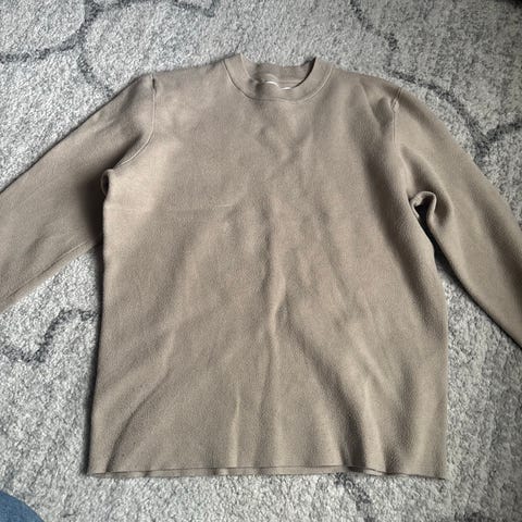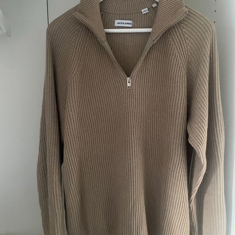 Jack & Jones genser i størrelse L, beige farge, laget av bomull. Genseren har en enkel og klassisk design med ribbestrikkede detaljer.