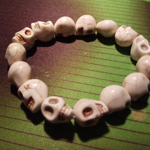 Vet ikke om det er sølv da det ikke er noe stempel, så trolig ikke. Men morsom ring med hodeskaller.