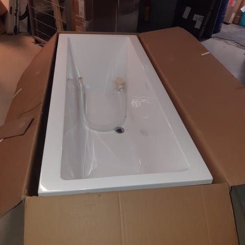 Badekar i hvit emalje med standard størrelse og firkantet design.