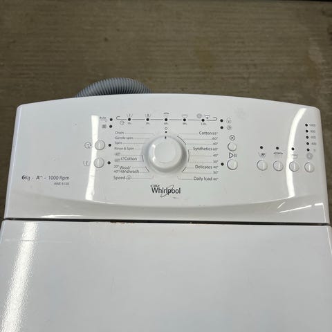 Whirlpool Toppmatet vaskemaskin med kapasitet på 6 kg. Maskinen har et oversiktlig kontrollpanel med flere vaskeprogrammer. Egnet for husholdningsbruk.