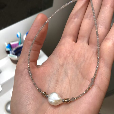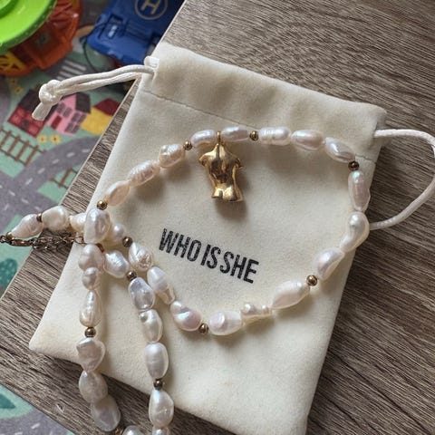 Oppbevart i rosa boks. Mulig å tre den på halskjede.