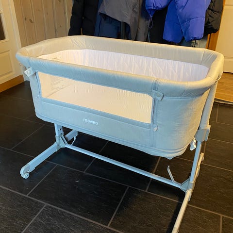 Åpnet men ubrukt moweo bedside crib, bare prøvd å ligge litt oppi der, med et barn med kolikk og som bare ble vant til samsovings så ble den aldri brukt da barnet ikke ville ligge for seg selv. Så den er helt ny og så og si ubrukt. Er med aerosleep beskyttelses madrass og 2 stk aerosleep laken. Alt kostet 2900 nytt, selges for 1500 med alt.