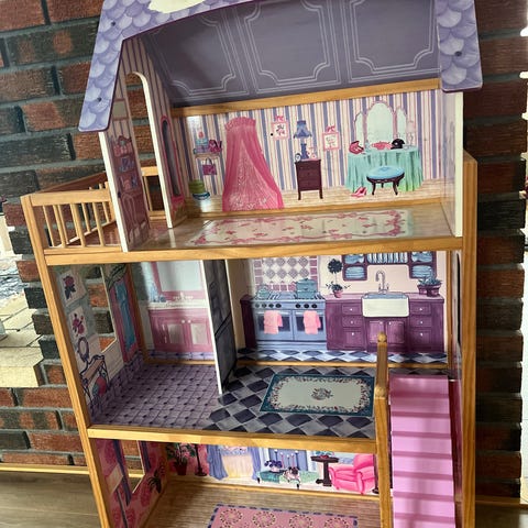 Selger pent brukt Kidkraft dukkehus Amelia. Dukkehuset er montert og inneholder inventar som vist på bildene.
